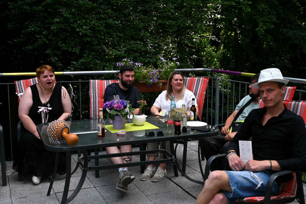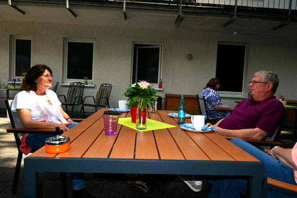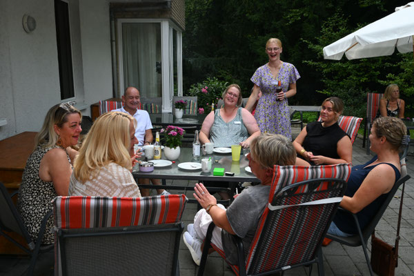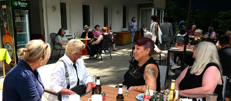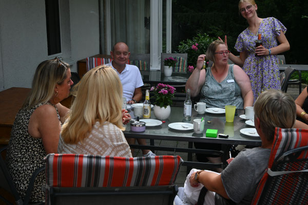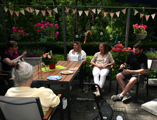 Man nehme bestes Wetter, kalte Getränke, leckeres Grillgut, gut gelaunte Menschen und die gemütliche Atmosphäre des Wiehengebirges auf der Terrasse der Diakonischen Behindertenhilfe Bergheimat an der Schützenstraße in Lübbecke und man erhält einen schönen Abend für die ehemaligen Mitarbeiterinnen und Mitarbeitern aller Einrichtungen der Diakonie Lübbecke, bei dem natürlich auch die Bewohnerinnen der Einrichtung selbst mit von der Partie waren. Auch an passender Musik mangelte es nicht.