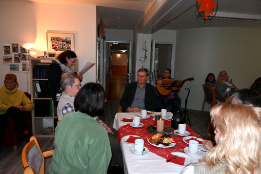 Schnell den mitgebrachten Tannenbaum geschmückt und dann zum gemütlichen Beisammensein bei Weihnachtsgebäck und Weihnachtsliedersingen.
